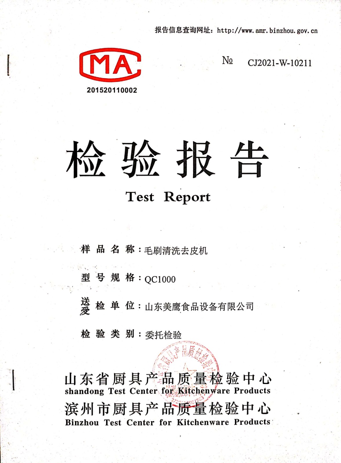毛刷清洗去皮機(jī)檢測報(bào)告