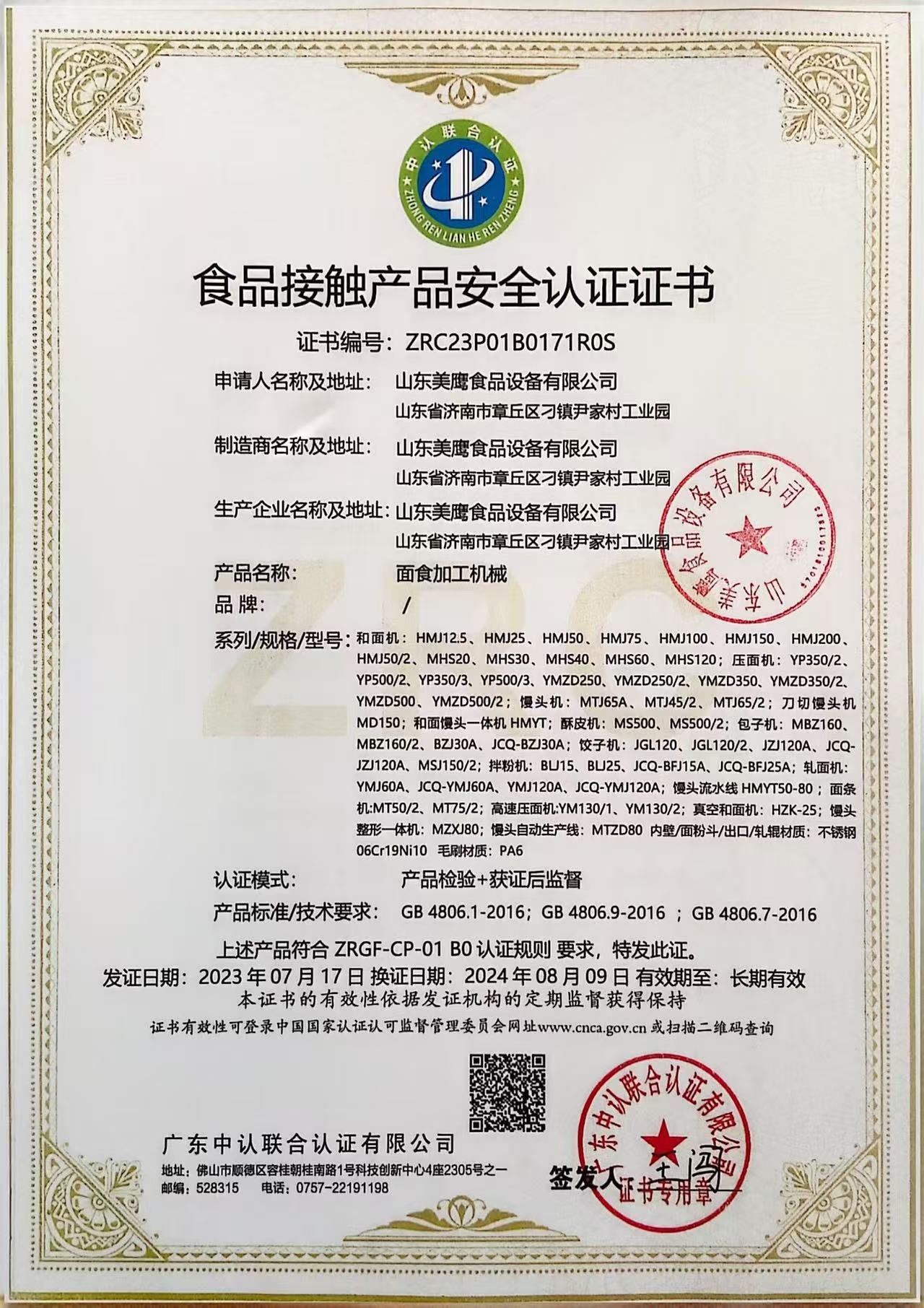 食品接觸產(chǎn)品安全認(rèn)證(面食機(jī)械)